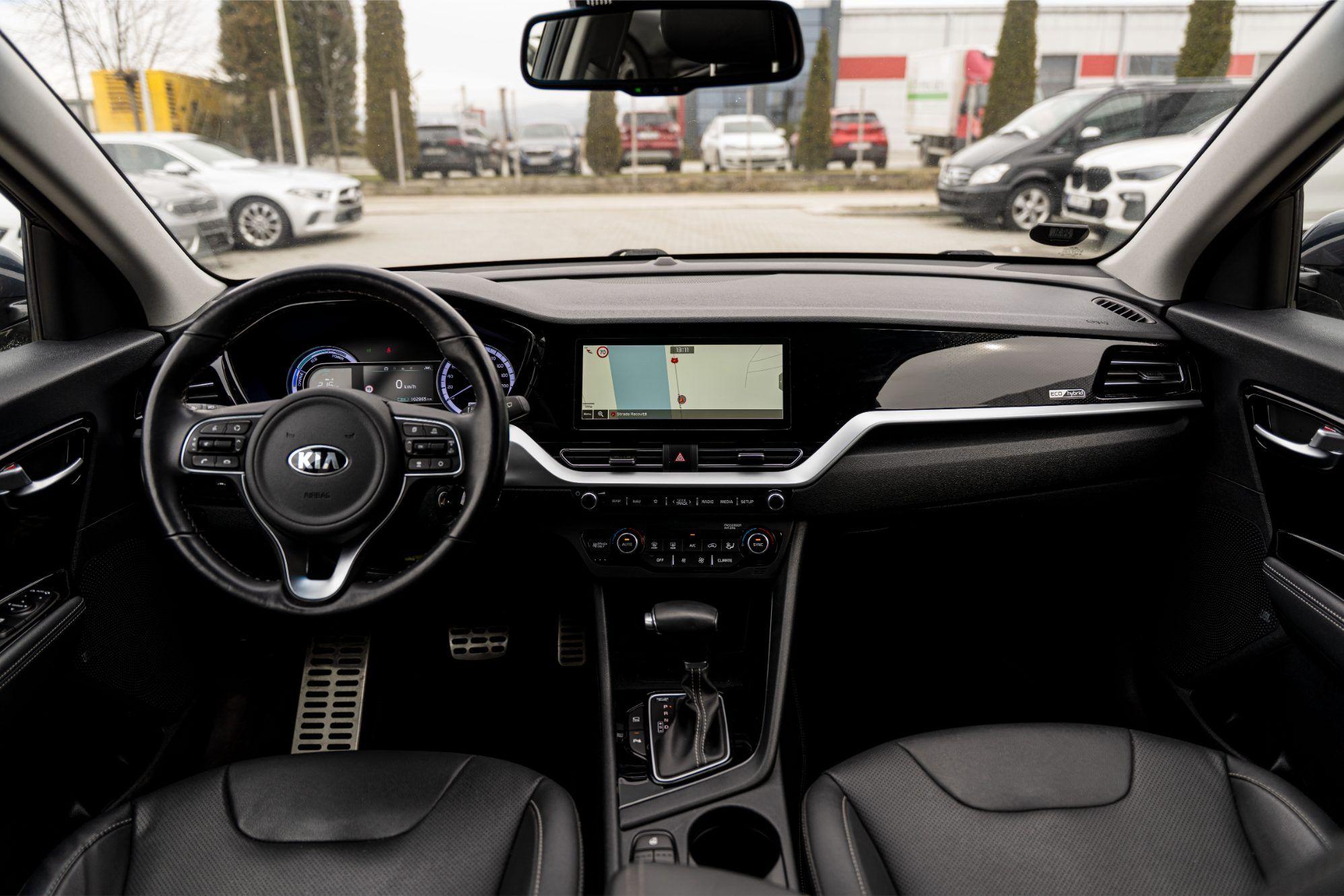 Kia Niro Facelift, motor 1.6 benzina hybrid, LED, Asistenta franare de urgenta, Lane assist, Camera marsarier, Cutie viteze automata, Oglinzi incalzite rabatabile electric, Distronic, Senzori parcare cu afisaj pe display, Climatronic 2 zone, Auto hold, Navigatie mare cu touchscreen actualizata Romania/Europa, Keyless entry / go, Faza lunga automata, Scaune incalzite, Bancheta incalzita, Volan incalzit