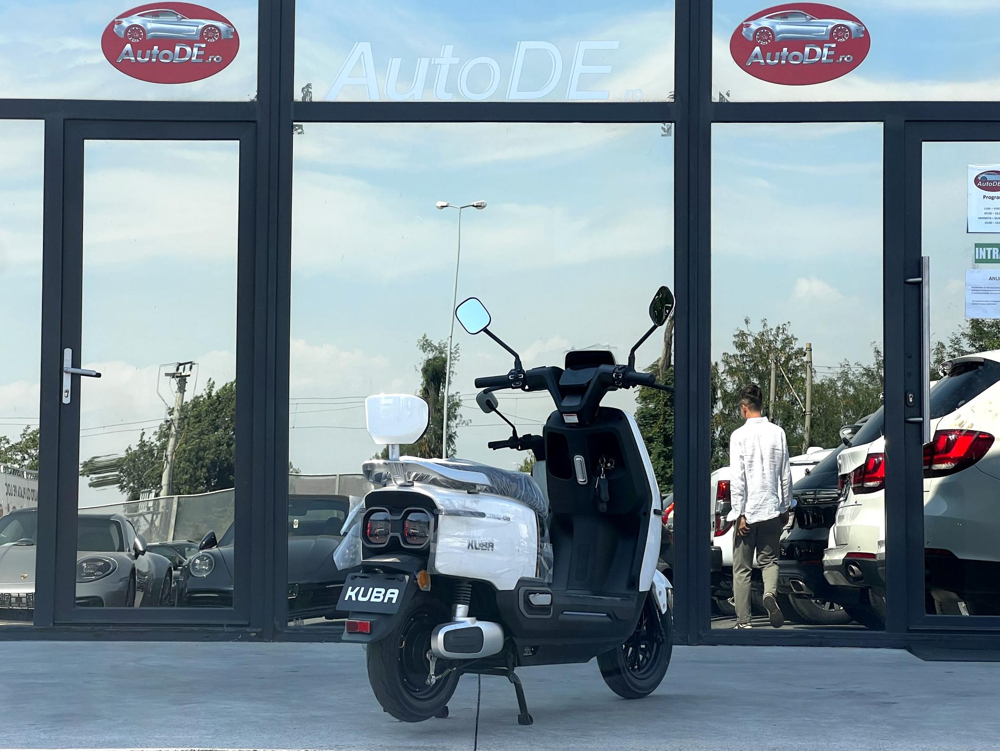 Scuter Electric pe stoc ! GARANTIE 12 LUNI AutoDE este un parc auto cu un concept nemțesc, care oferă clienților o experiență unică, autoturismele fiind verificate atât in Germania, cât și de către noi; oferim transparență, garanția* mașinilor și găsim soluții pentru toate necesitățile clienților noștri! * MODALITATE ACHIZITIE: Cash/ Credit auto/Leasing ( contract de munca in Romania sau in strainatate, pensii in Romania, persoane cu istoric negativ, Persoane Juridice); * BUY – BACK: Oferim clientilor posibilitatea de a lasa masina veche la schimb, evaluarile avand loc la parcul nostru. TVA INCLUS SI DEDUCTIBIL ! Dotari: - Display LED Digital - Far Led - Portbagaj - Motor Electric 1200W - Baterie 72V 20Ah - Viteza maxima 45 km/h - Tensiune de încărcare 110V/220V 50-60 Hz - Autonomie: 70-80 km - Timp de incarcare 6-8 Ore - Consumul de energie ~2.0 kW/Ora - Frână față Disc *Descrierea autovehiculului este cu scop informativ. In cadrul acesteia pot intervenii erori de tipar sau erori umane (optiuni, performanța a motorului, capacitate cilindrica, transmisie etc). Lista exacta a dotarilor se poate verifica in baza seriei de sasiu la reprezentantele marci sau la fata locului. Detalii se pot oferii telefonic.* ———————————————————————— Numar proprietari: 0