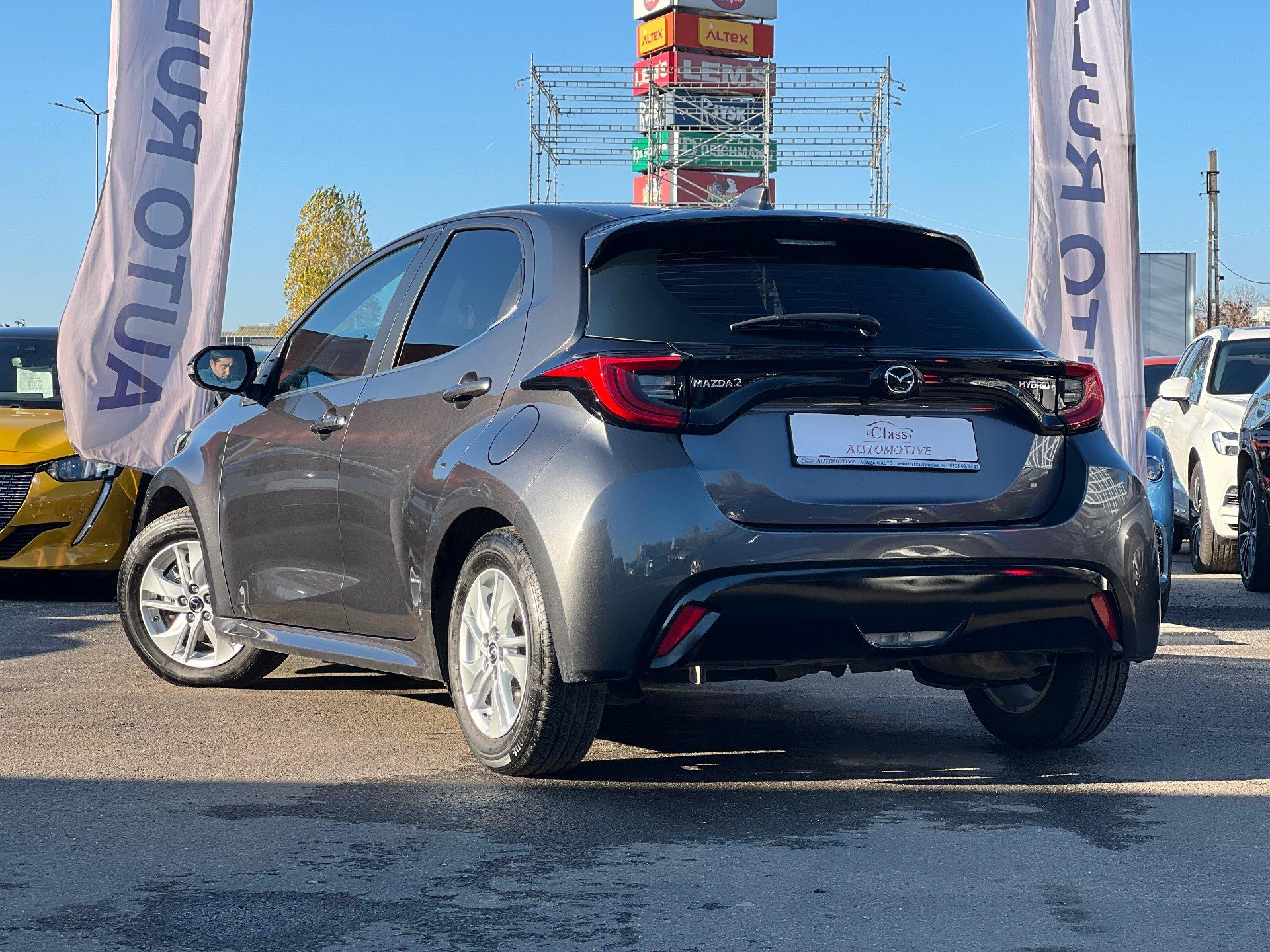 MAZDA 2 HYBRID - 2024 ✅Garantie 2029 ✅Istoric service ✅Autoturism verificat tehnic ✅KM garantati contractual Serie sasiu: JMZKBAC3X0A323378 Pret: 19.490 EURO TVA inclus si nedeductibil. Pret finantare: 19.880 EURO TVA inclus si nedeductibil. Factura se va emite in lei la cursul de vanzare euro al Bancii Transilvania din data efectuarii platii. Dotari:: Jante aliaj 15" Tapițerie textil+ piele Scaune față reglabile pe înălțime si incalzite + Volan incalzit Climatizare automată pe două zone Faruri - Halogen Proiectoare ceață - Halogen Stopuri - LED Volan si schimbator îmbrăcat în piele Scaune față încălzite Volan încălzit Acces fără cheie Cameră video marșarier Senzori de ploaie Buton pornire-oprire motor Display central 8" AM/FM/DAB-Radio (6 difuzoare) Geamuri electrice – Față / Spate Cotieră centrală față Banchetă rabatabilă 60:40 Frână de parcare electrică / Auto Hold Bluetooth CarPlay, Android Auto Computer de bord Pilot automat adaptiv Senzori de lumină Control Dinamic Stabilitate (DSC) / Controlul tracțiunii (TRC) Sistem monitorizare pneuri (TPMS) eCall Sistem de asistenţă pre-coliziune (PCS) Sistem recunoaștere semne trafic (TSR) Sistem alertă șofer (DAA) Control automat fază lungă (HBC) Sistem asistență bandă de rulare (LDWS) Asistență de urgență volan (doar pentru pietoni) Sistem asistență pantă (HLA) Limitator de viteză (ASL) Descrierea autovehicului este strict informativă, pot există greșeli umane de tipar (opțiuni, performanța a motorului, capacitate cilindrică, transmisie etc) Pentru informatii suplimentare cu privire la opțiunile prezentate, ne puteți contacta telefonic