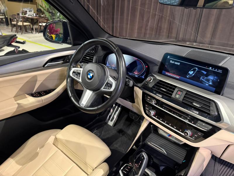 BMW X3 M40d TVA deductiblia inclusa in pret Posibilitate de finantare prin leasing sau credit. S704 M Sports suspension S710 M leather steering wheel S715 M Aerodynamics package S7R7 Innovation package S402 Panorama glass roof S413 Luggage compartment net S423 Floor mats velours S428 Warning triangle and first aid kit S430 Interior/outside mirror with auto dip S431 Interior mirror with automatic-dip S459 Seat adjustment, electric, with memory S461 Electric seat backrest adjustment, rear S481 Sports seat S488 Lumbar support, driver and passenger S493 Storage compartment package S494 Seat heating driver/passenger S4AW Instrument panel Sensatec S4K7 Interior trim alu.rhomb.w.accent strip S4UR Ambient interior light S610 Head-up display S650 CD drive S676 HiFi speaker system S6AC Intelligent emergency call S6AE Teleservices S6AK Connected Drive Services S6C4 Connected Package Professional S6NW Telephony with wireless charging S6U3 BMW Live operating area Professional S6WD WLAN Hotspot S534 Automatic air conditioning S548 Kilometre speedo S552 Adaptive LED headlight S5A1 LED Fog lights S5AC High-beam assistant S5AL Active Protection S5AS Driving Assistant S5DA Passenger airbag deactivation S5DM Parking assistance system S22Z 21" light-al.wh.dbl.sp. 718M em.mix tyre S230 Extra package, EU-speciifc S258 Tyres with runflat properties S2NH M Sport brake S2PA Locking wheel bolt S2T4 M Sport differential S2TB Sport automatic gearbox S2VB Tyre pressure display S2VG Performance Control S2VL Variable sport steering S302 Alarm system S322 Comfort access system S3AC Trailer coupling S3MC M roofrailing, Shadow Line S801 National version Germany S851 Language version German S879 On-board literature, German S8KB Oil service interval 24 mths / 25,000 km S8R9 Refrigerant R1234yf S8TF Active pedestrian protection S760 High gloss shadow line S775 Headlining anthracite