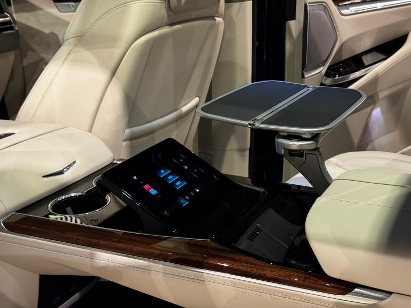- Consolă spate Executive, cu funcție de încărcare wireless, depozitare și măsuțe rabatabile