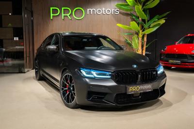 BMW M5 Competition, echipat cu un motor de 4.4l benzină, care dezvoltă 625 CP Prețul este de 71.428 euro fără TVA, adică 85.000 euro cu TVA inclus, deductibil Posibilitate de finanțare prin BT Leasing, BCR Leasing, Impuls Leasing, Unicredit Leasing, Porsche Leasing și Moov Leasing operațional Configurație: - Scaune electrice, incalzite, ventilate cu funcție de memorie - Volan M Sport cu comenzi și padele, încălzit - Park Assist PLUS (Camera 360*, Surround View, Senzori) - Sistem Evacuare M Sport - Funcție Distronic, menține distanța și frânează automat față de mașina din față - Sistem Audio Premium Bowers&Wilkins - Asistent Activ pentru menținerea benzii de mers (Lane Assist și Lane Departure Warning) - Asistent activ pentru schimbarea benzii de mers (Side Assist) - Head-Up Display - Faruri BMW Laser cu asistent faza lungă (High-Beam Assist) - Portiere cu închidere Soft-Close - Driving Assistant Plus - BMW Live Cockpit Professional - Integrare Smartphone (Apple Carplay, Android Auto, Bluetooth) inclusiv încărcare wireless a telefonului - Protecție activă pentru pietoni - Geamuri Privacy cu tentă întunecată - Sistem monitorizare a presiunii în pneuri - Recunoaștere indicatoare rutiere cu informații Live din trafic - Haion acționat electric - Sistem monitorizare șofer cu recomandare pauză