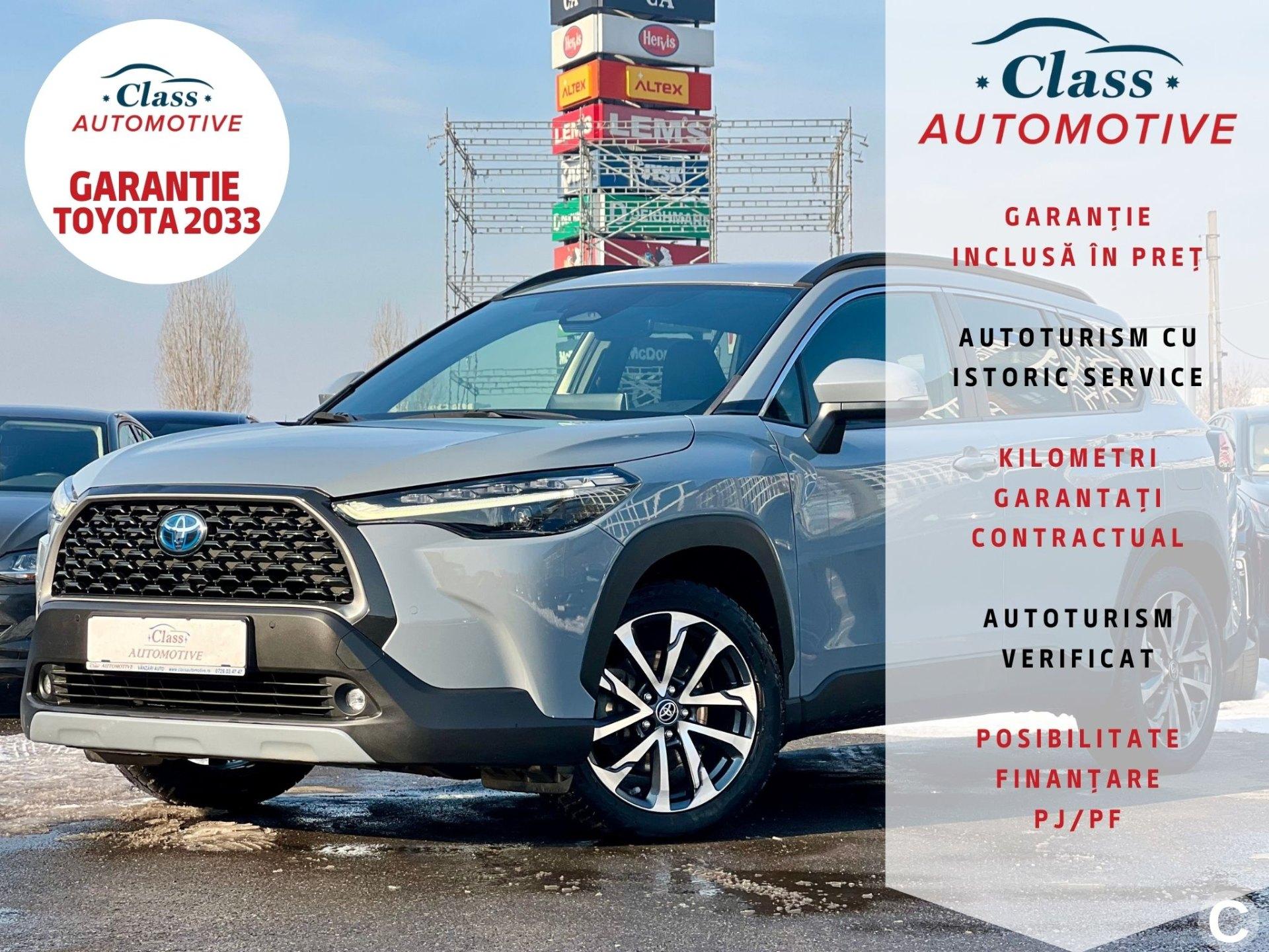 CLASS AUTOMOTIVE Dealer Auto Rulate Pentru vizualizarea stocului complet accesati www.classautomotive.ro --Experienta 15 ani-- Toyota COROLLA Cross - Full Hybrid - Primul Proprietar Serie sasiu: JTDKBABB40A139579 Pret: 26.990 EURO TVA inclus si nedeductibil Pret finantare: 27.530 EURO TVA inclus si nedeductibil Factura se va emite in lei la cursul de vanzare euro al Bancii Transilvania din data efectuarii platii ✅Garantie Toyota 2033 - in limita a 200.000 km ✅Un singur proprietar ✅Autoturism verificat tehnic ✅KM garantati contractual DOTARI: - ACC - pastreaza distanta + avertizare si franare automata - Lane assist-asistent pastrarea benzii - Keyless GO +Entry - Camera video marsarier - Climatizare automata  - Senzori ploaie - Senzori lumina - Computer bord - Pilot automat cu functie de pastrare distanta fata de masina din fata - Asistenta pastrarea benzii de circulatie - Faruri automate - Comenzi volan - Android Auto si Apple Carplay - Auto hold - Sistem audio / Bluetooth multimedia / AUX - Functie cornering - Oglinzi incalzite - Oglinda retrovizoare cu senzor antiorbire - Jante aliaj Descrierea autovehicului este strict informativa, pot exista greșeli de dactilografiere (optiuni, performanța a motorului, capacitate cilindrica, transmisie etc.) In caz de nelămuriri cu privire la opțiunile prezentate, ne puteți contacta telefonic pentru detalii suplimentare